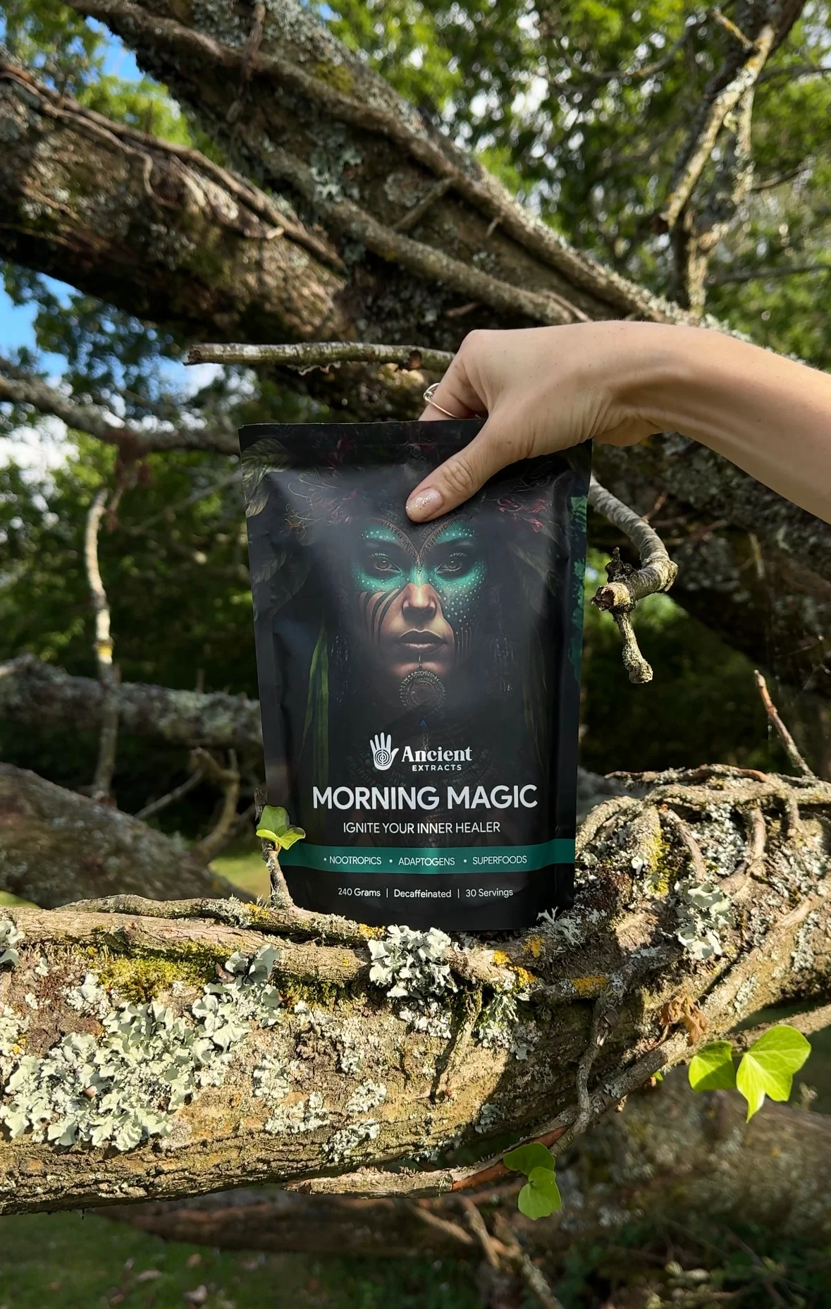Morning Magic is a natural, decaf mushroom coffee alternative designed to give you calm, focused energy without the jitters or crash of traditional coffee. Instead of relying on high doses of caffeine, it blends functional mushroom extracts and clean ingredients that support sustained energy, mental clarity, and gut health. Each serving is crafted with lab-tested, high-quality extracts like Lion’s Mane and Chaga, ensuring purity and potency.